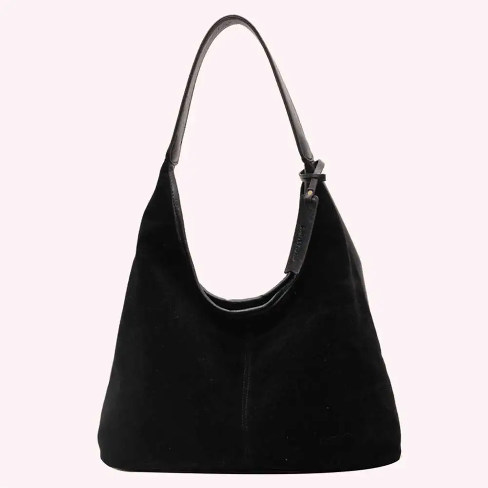 Women Suede Tote Bag Magnetic Closure Shoulder Bag Slouchy Retro Handbag Large Capacity for Work Travel (Velvet+PU)